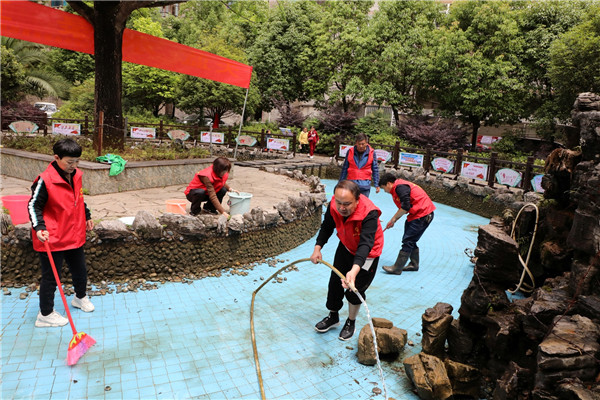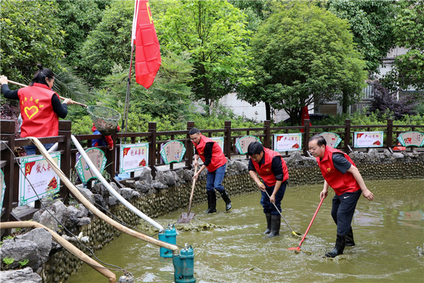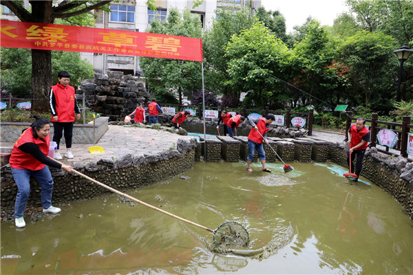活动以“守护家园”为主题。走进活动现场,全体共产党员、工会会员在县直机关工委书记的带领下,穿上志愿者服装,挽起衣袖,拿起劳动工具,投入机关大院垃圾清扫、办公区花园池塘清洗等系列活动。抽水、清理杂物、清除淤泥、清洗鹅卵石、清水洗涤……一道一道工序都在有条不紊地进行着。活动中,全体人员分工合作、积极配合,忙得不亦乐乎,现场劳动热火朝天。经过6个多小时的辛勤忙碌,池塘及花园面貌焕然一新,重现鱼儿欢快嬉戏的情景。