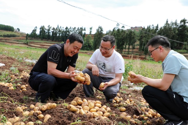 近日,走进罗平县阿岗镇以宜村洋芋地里,农民正在田间忙碌,呈现一片丰收景象。