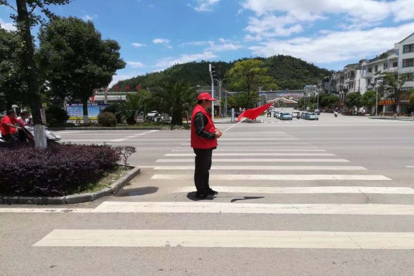 在汽车北站门口红绿灯处,志愿者们身着志愿者服装,手持文明劝导红旗,协助交警对行人及非机动车闯红灯、逆行、越线等待、走机动车道等不文明行为进行劝导,倡导市民们自觉遵守交通规则,文明出行。