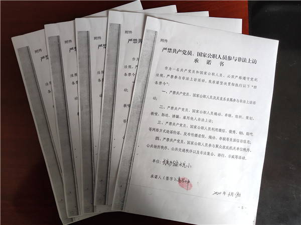 罗平县长底乡中心学校以自己学及集中学的方式组织教师对县委下发的《关于严禁共产党员、国家公职人员参与非法上访的通知》学习,并与在职、退休教师签订承诺书142份。