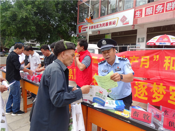 开展活动“讲”。组织综治、派出所、司法、安监等多部门,利用多依、八大河赶集日街天人流量大、人员集中的特点开展设点宣传活动。在人员密集、集贸市场等场所发放和张贴宣传问卷。利用全乡决战决胜脱贫攻坚“自强诚信感恩”巡演巡讲活动,深入村组与群众面对面、一对一了解人民的生产生活情况以及群众的安全感和满意度,通过现场提问、解答群众相关咨询等形式,引导群众积极参与,切实提升人民对群众安全感满意度调查工作的知晓率和认同感。