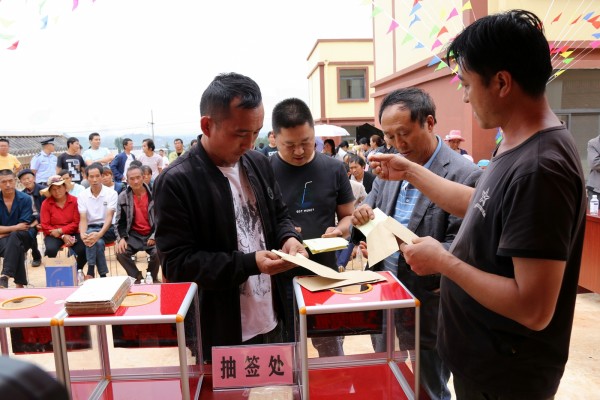 此次现场分房为阿岗水库移民第一批安置分房。为体现公平公正公开的原则,切实维护移民群众的切身利益,实行抽签选房的方式进行搬迁安置房分配。分房地对象是已签订移民搬迁协议且交清房款的22户移民搬迁户,并以安置点为单位,按搬迁安置协议确定的户型进行现场抽签选房。每户确定的抽签代表进行第一次抽签,确定选房顺序号,抽签完成后发放《选房顺序通知单》并当场公布抽签顺序,然后移民凭通知单先后顺序号进行第二次抽签,并根据房屋编号确定各户安置房,选房确定后,发放《选房结果确认单》,并由搬迁户签字确认,最后由公正处进行公正。