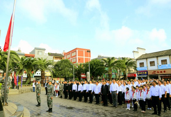 罗平县板桥镇举行“迎国庆”升国旗仪式