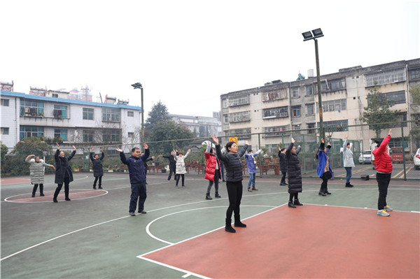上午10时许,随着工间操音乐响起,街道干部职工陆续集中,在工间操指导老师的带领下,开始了寒冬中的健身舞。