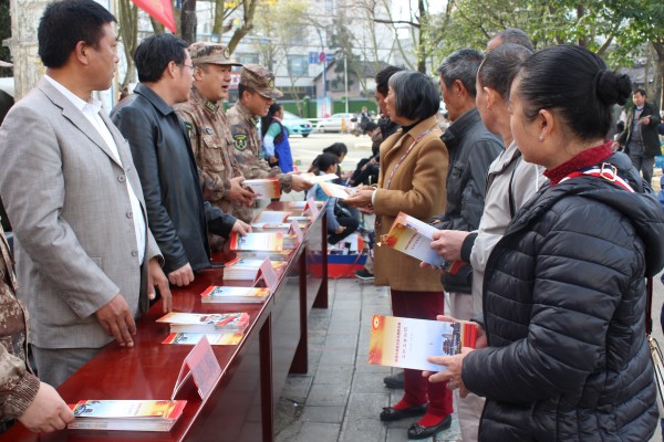“你好,这是曲靖市创健全国双拥模范城应知应会知识,您可以拿一份看哈”“你知道什么是双拥,双拥包含哪些内容吗?”……活动现场,工作人员为过往群众发放双拥宣传彩页,向群众讲解双拥法律、法规知识,讲解优抚安置和退役士兵就业创业政策,进行答疑释惑,增强了广大群众的拥军优属意识和军民国防意识。