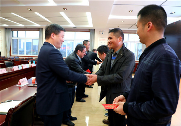 会上,县领导为驻村工作队员们送上了慰问金。