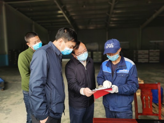 在五里清饮品有限公司,李柱与相关负责人进行沟通交流,“你们这里一年大概能生产几桶水?你们的疫情防控是怎么宣传的?职工的防护措施是怎么做的?”同时查阅该公司疫情防控信息登记台账,深入该公司生产车间查看疫情防控落实落细与复工复产情况。