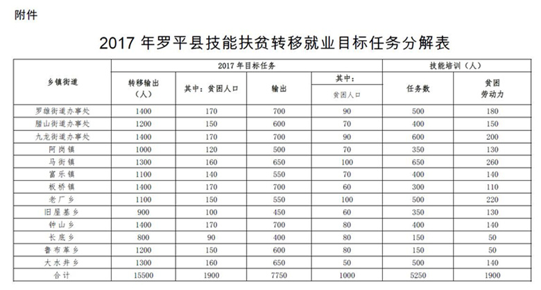 附件:2017 年罗平县技能扶贫转移就业目标任务分解表