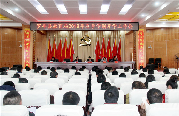 为确保新学期各项工作有序推进并取得实效,2月26日,罗平县召开2018年春季学期开学工作会。会议贯彻落实国家省市相关教育精神,总结2017年工作,分析当前形势,安排部署2018年教育工作,尤其是当前工作。会议进一步统一思想,认清形势,强化责任,狠抓落实,抓实安全和谐稳定、“控辍保学”、学校党建、教育教学质量提升及领导干部作风建设等工作。全县各乡(镇、街道)中心学校、初级中学校长,县直中小学和幼儿园的校(园)长及教育局机关全体干部职工等参加会议。