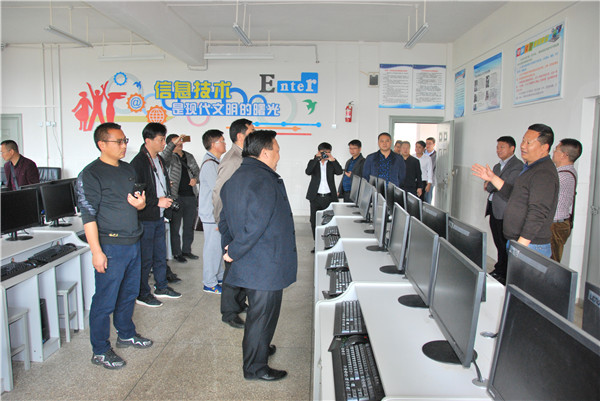 在罗雄一中李校长的引导解说下,麻栗坡县教育局领导一行听取了罗雄一中的办学情况,先后参观了留守儿童之家、理化生实验室及保管室、微机室、直录播室、美术室、音乐室、图书室、阅览室等教学功能室并查阅义务教育均衡发展档案,观摩了党支部活动室、荣誉室、德育室、团委办公室等基层党建工作。