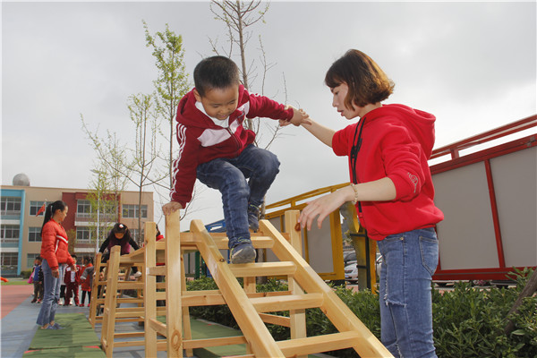“我可喜欢这个幼儿园了,每天户外活动的时候我喜欢骑小车、爬攀爬架和投篮球。”大一班的小朋友黄豆豆开心地说。