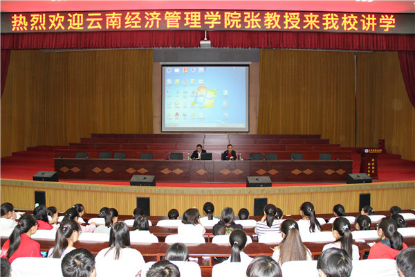 本次讲座,罗平三中邀请到了有着云南高校“铁嘴”之称的张云刚博士。张教授首先以轻松的互动式开场,迅速拉近了与学生的距离。为调整学生考前心态,帮助考生建立自信,张教授首先结合自身高考经历、大学经历、创办大学经历展开,接着从假设没有高考、为什么上大学、早恋问题、听老师的话、大学(专业)选择,大学提供了人生的多种选择性等多个方面进行了深入浅出的讲解。讲座中,张教授幽默风趣的讲话风格和生动有趣的事例深深吸引着在场师生们的注意力,会场上不时响起笑声和掌声。在张教授的调动下,同学们完全沉浸在轻松、愉快、忘我的氛围中,同学们很快就从高考前的压力中释放了出来。