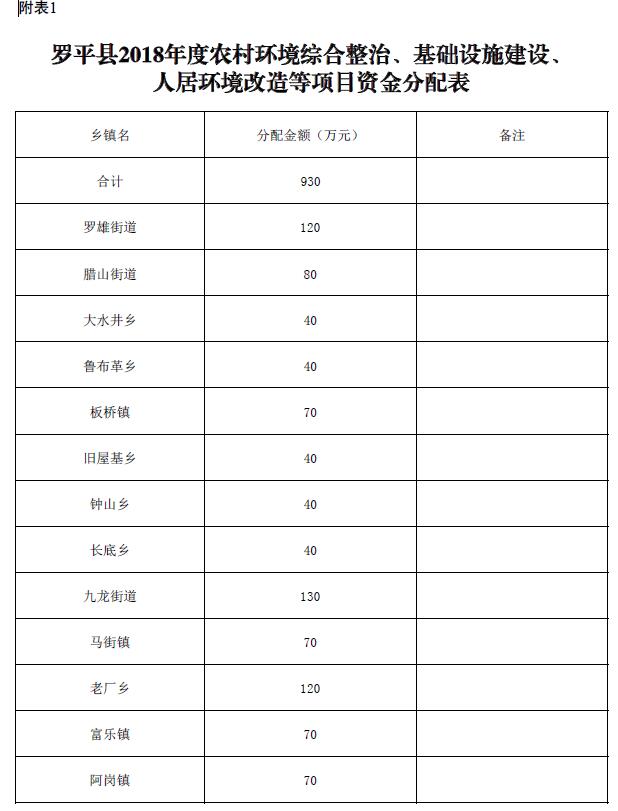 罗平县人民政府关于下达 2018 年第一批涉农整合资金用于农村基础设施建设和人居环境改造等项目建设的通知