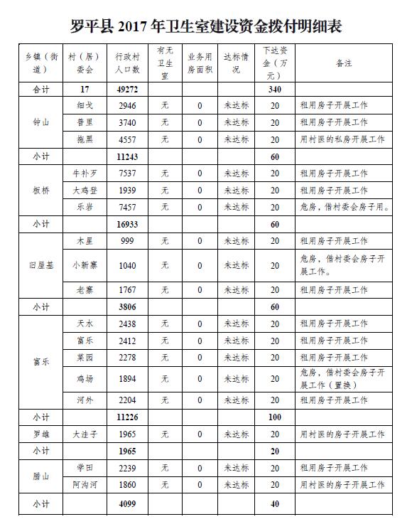 罗平县人民政府关于下达2018年第一批涉农整合资金用于全县17个未达标的村级卫生室建设的通知