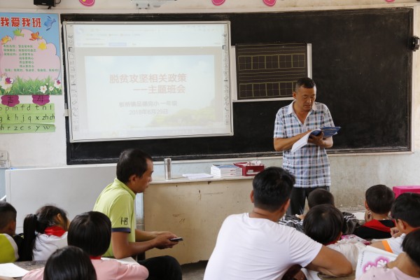 6月29日下午,品德完小组织各班级召开主题班会,给家长和孩子上了一堂教育脱贫的专题课,讲解脱贫攻坚相关政策,随后各班级组织家长和孩子一起参观学生宿舍,让家长亲身体会孩子在学校整齐划一的生活环境,将文明习惯传播给家长,并“监督”好自己的家长积极参与到净化家庭环境行动中去。