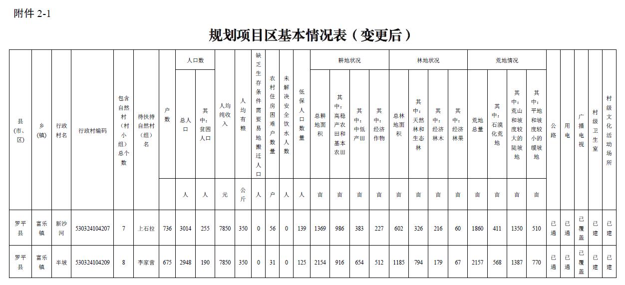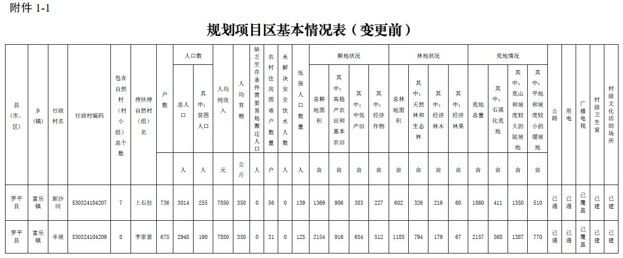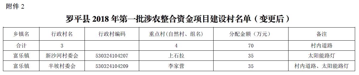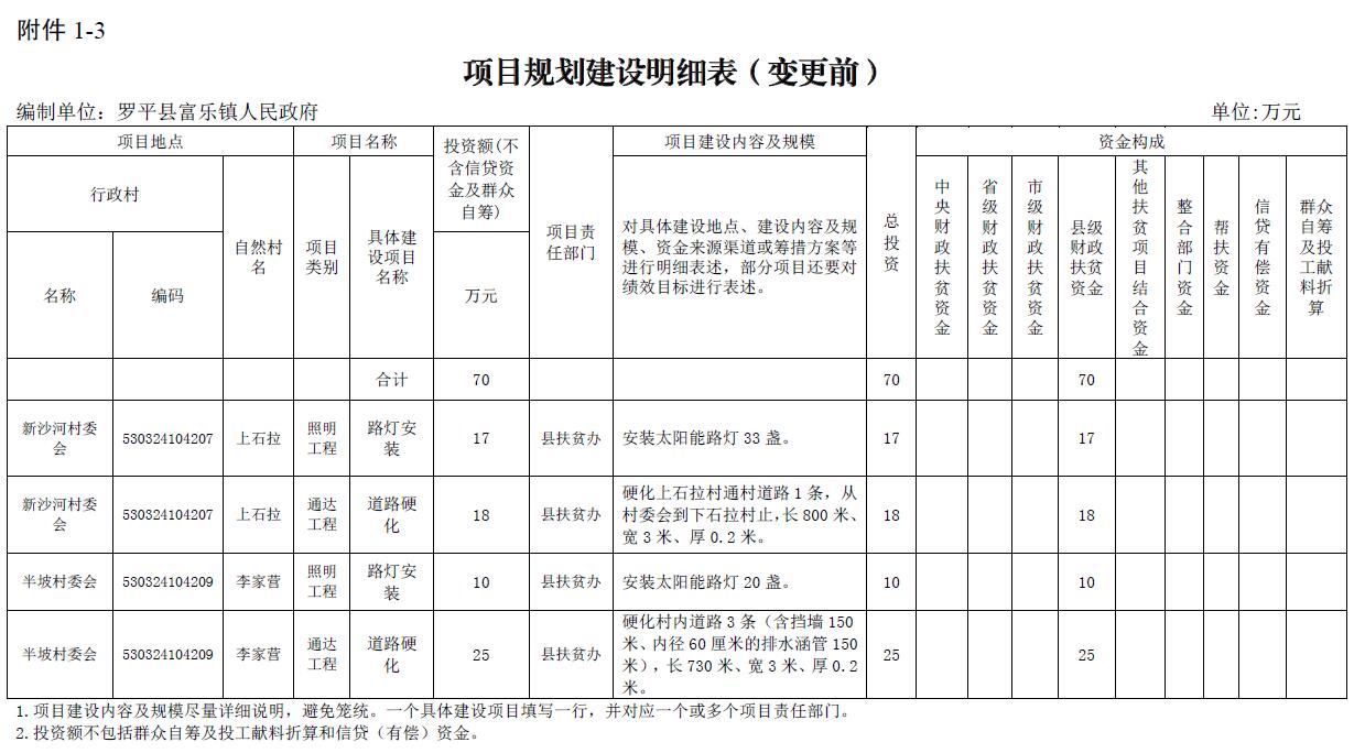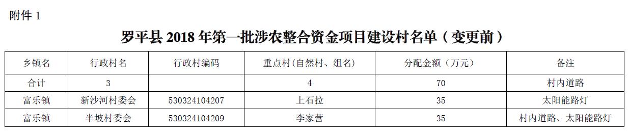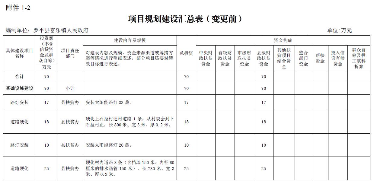 附件:1.变更前富乐镇2018年第一批涉农整合资金项目资金规划明细表