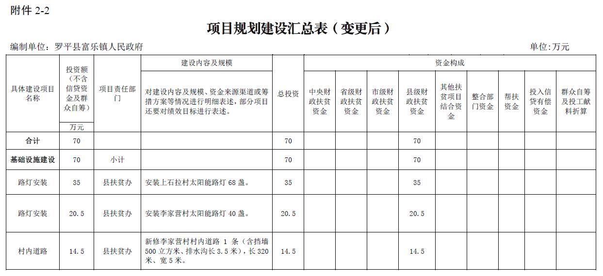 原则同意变更富乐镇2018年第一批涉农资金用于农村基础设施建设和人居环境改造等项目资金规划及建设内容,具体如下: