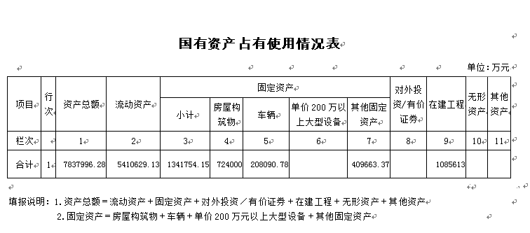 截至2017年12月31日,资产总额7837996.28元,其中,流动资产5410629.13元,固定资产1341756“4·15”元,对外投资及有价证券0元,在建工程1085613元,无形资产0元,其他资产0元(具体内容详见附表)。与上年相比,本年资产总额增减少255350元,其中固定资产减少255350元。处置房屋建筑物0平方米,账面原值0元;处置车辆1辆,账面原值209000元;报废报损资产11项,账面原值46350元,实现资产处置收入46350元;出租房屋0平方米,账面原值0元,实现资产使用收入0元。