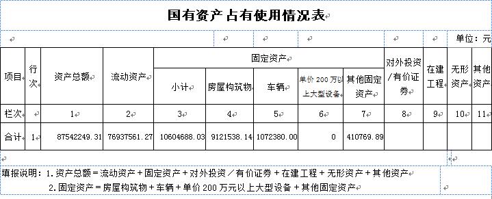 (一)国有资产占用情况