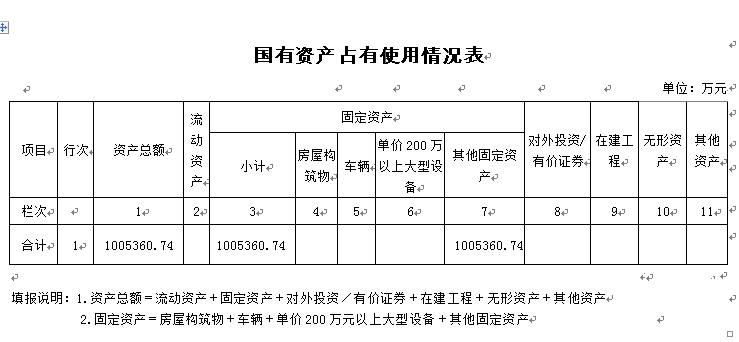 截至2017年12月31日,罗平分发展和改革局部门资产总额1005360.74元,其中,流动资产0元,固定资产1005360.74元,对外投资及有价证券0元,在建工程0元,无形资0元,其他资产0元(具体内容详见附表)。与上年相比,本年资产总额减少229255.26元,其中固定资产减少229255.26元。处置房屋建筑物0平方米,账面原值0万元;处置车辆1辆,账面原值182800.00元;报废报损资产152项,账面原值309844.00元,实现资产处置收入309844.00元;出租房屋0平方米,账面原值0元,实现资产使用收入0元。