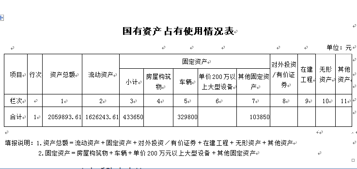 (一)国有资产占用情况