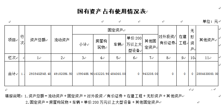 (一)国有资产占用情况
