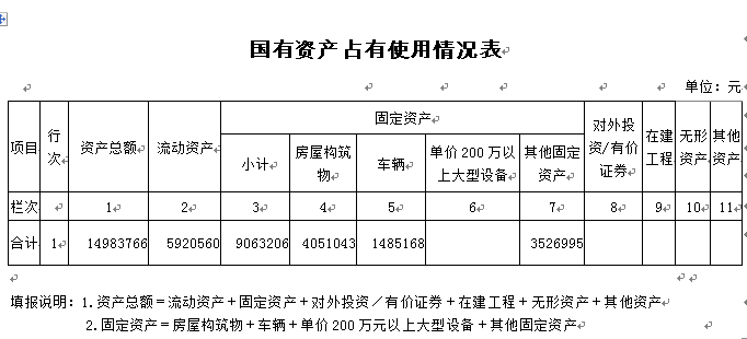 截至2017年12月31日,林业局部门资产总额14983766元,其中,流动资产5920560元,固定资产9063206元,对外投资及有价证券0元,在建工程0元,无形资产0元,其他资产0元(具体内容详见附表)。与上年相比,本年资产总额减少5664426元,其中固定资产增加279828元。处置房屋建筑物0平方米,账面原值0元;处置车辆2辆,账面原值0元;报废报损资产97项,账面原值106632元,实现资产处置收入0元;出租房屋0平方米,账面原值0元,实现资产使用收入0元。