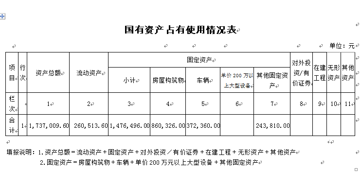 (一)国有资产占用情况
