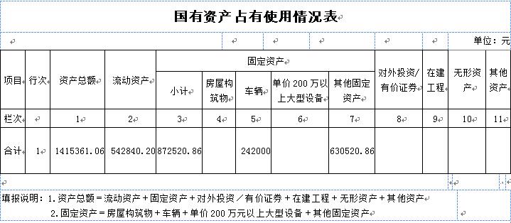(一)国有资产占用情况
