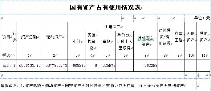 截至2017年12月31日,资产合计6,066,133.73元。其中:流动资产5,377,863.73元,固定资产688,270.00元,无形资产0.00万元;在建工程0.00万元,无形资产0万元,其他资产0万元(具体内容详见附表)。与上年相比,本年资产总额增加1,123,818.78元,其中固定资产减少150,200元。处置车辆1辆,账面原值200,000.00元。
