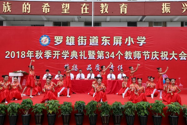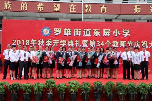 9月10日,罗平县罗雄街道东屏小学举行以“梦想、品质、责任”为主题的2018年秋季开学典礼暨第34个教师节庆祝表彰,全校师生共同迎接新学期。