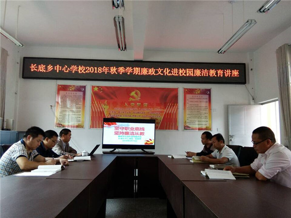 9月19日,罗平县长底乡中心学校组织党员干部开展廉洁从教警示教育活动,进一步提高党员干部的廉政自律意识,筑牢思想防线;扎实推动廉政文化进校园“五个一”活动的落实。