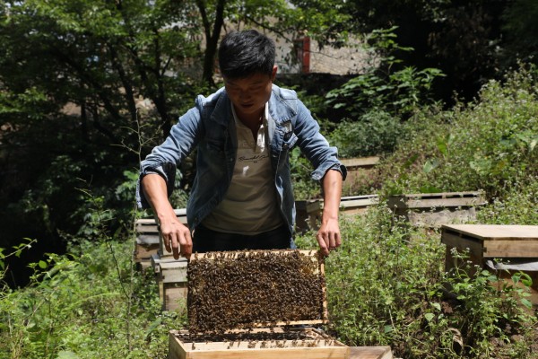 脱贫后的刘跃能干劲更足,不但扩大传统作物的种植规模,还在驻村帮扶干部的鼓励下从事蜜蜂养殖。