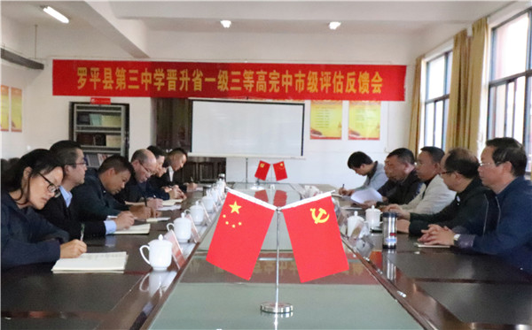 在复评汇报会上,罗平三中校长作了工作汇报,观看晋级升等专题片,县教育局领导宣布县级初评意见。随后,专家组围绕《云南省普通高完中办学水平综合评价方案(试行)》,通过一系列环节进行复评。在反馈会上,复评专家组反馈了市级复评意见,充分肯定了罗平三中的创建工作。近年来,罗平县委、县政府和县教育局高度重视罗平三中的创建工作,罗平三中不断更新办学理念,提升管理水平,加强制度建设,强力推进教研教改,校园文化特色鲜明,素质教育硕果累累,教师队伍素质过硬,领导班子务实民主,办学条件彻底改善,教育质量稳步提升。专家组一致认为,罗平三中创建工作成效显著,符合省一级三等高中的各项指标,通过复评验收。