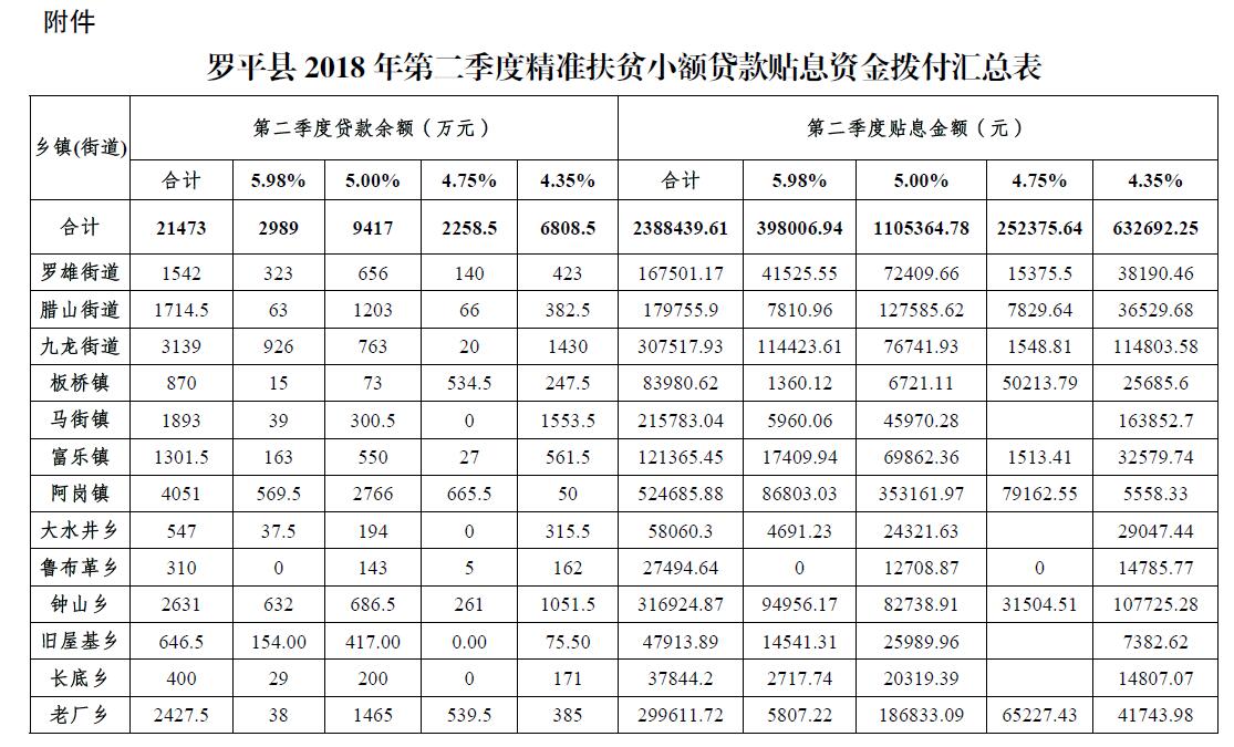附件:罗平县2018 年第二季度精准扶贫小额贷款贴息资金拨付汇总表