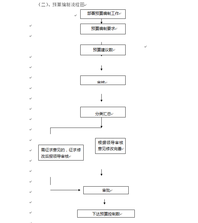 财会部门部署预算编制工作,业务部门负责人或归口部门提出预算编制要求,业务部门提出预算建议数,业务部门负责人或归口部门对预算建议数进行审核,财会部门审核、分类汇总预算建议数,预算工作领导小组审批,业务部门负责人或归口部门审批、下达预算控制数,业务部门进行预算执行。