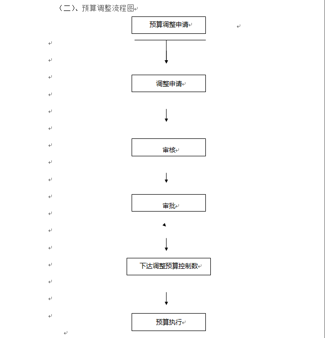 业务部门提出预算调整申请,业务部门负责人或归口部门进行审核,预算工作领导小组审批,业务部门负责人或归口部门审批、下达预算调整数,业务部门进行预算执行。