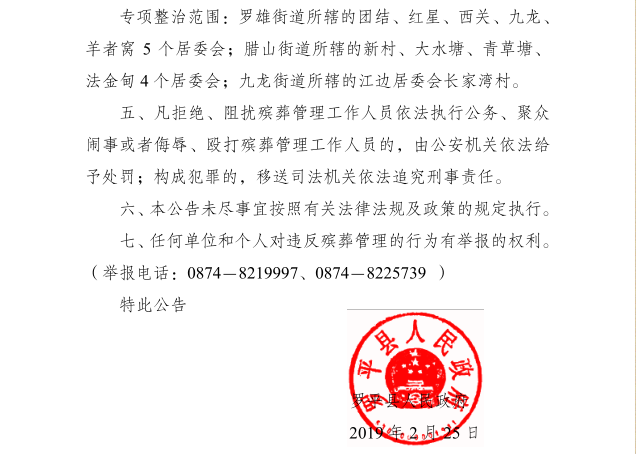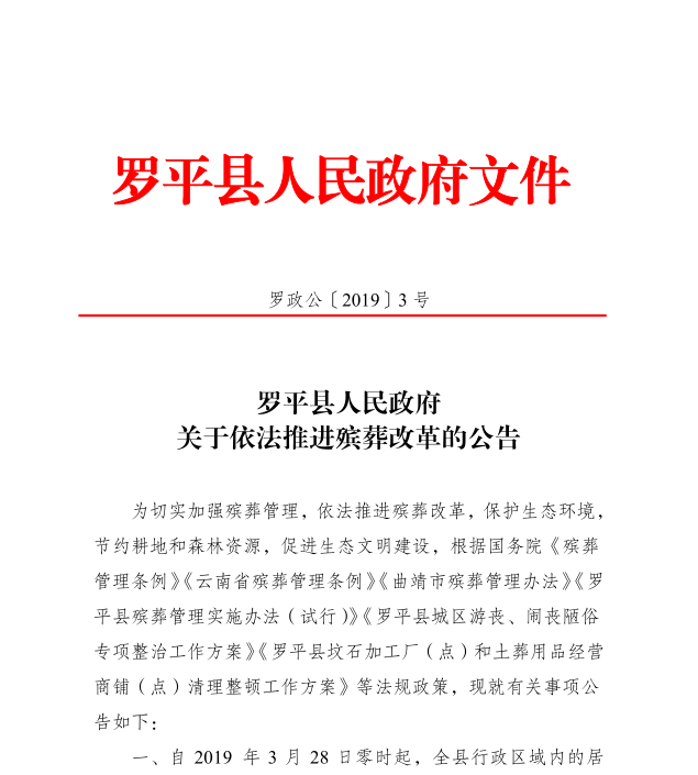罗平县人民政府关于依法推进殡葬改革的公告