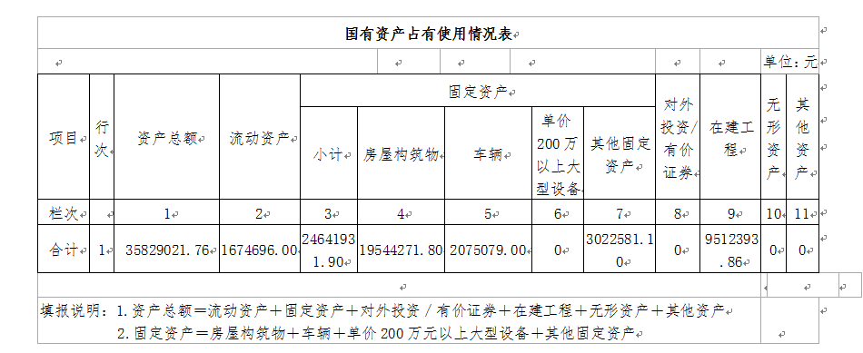 (二)国有资产占用情况