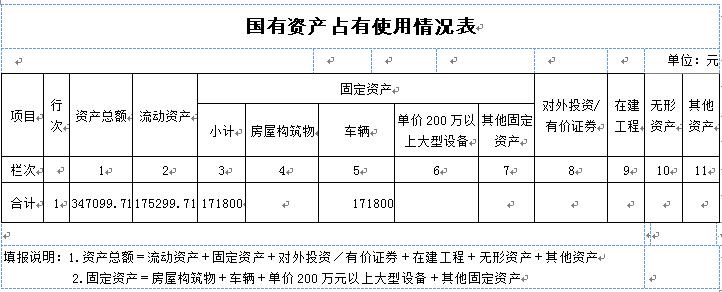 截至2017年12月31日,中共罗平县委机构编制办公室资产总额347099.71元,其中,流动资产175299.71元,固定资产171800元,对外投资及有价证券0元,在建工程0元,无形资产0元,其他资产0元。与上年相比,本年资产总额增加347099.71元,其中固定资产增加171800元。处置房屋建筑物0平方米,账面原值0元;处置车辆0辆,账面原值0元;报废报损资产0项,账面原值0元,实现资产处置收入0元;出租房屋0平方米,账面原值0元,实现资产使用收入0元。