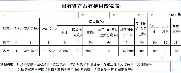 截至2017年12月31日,罗平县农村经济经营管理站资产总额239305.38元,其中,流动资产11745.38元,固定资产227560.00元,对外投资及有价证券0元,在建工程0元,无形资产0元,其他资产0元。与上年相比,本年资产总额减少109244.12元,其中固定资产减少61620.00元。处置房屋建筑物0平方米,账面原值0元;处置车辆1辆,账面原值61620.00元;报废报损资产0项,账面原值0元,实现资产处置收入0元;出租房屋0平方米,账面原值0元,实现资产使用收入0元。