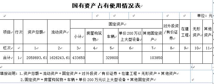 (二)国有资产占用情况
