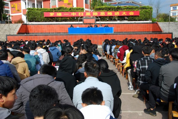 “我们要通过开展扫黑除恶专项斗争工作,解决一些平时难以解决的危害师生利益、干扰学校教育教学秩序的涉黑涉恶问题,铲除影响校园和师生安全的各类黑恶势力的侵害和干扰,净化校园及周边治安环境,为保障正常教育教学秩序营造良好环境……”3月8日,罗平县罗雄一中召开扫黑除恶工作推进会,对扫黑除恶专项斗争工作进行再动员、再部署,全面推进学校扫黑除恶工做深入开展并取得实效。全校2300余名师生参加。