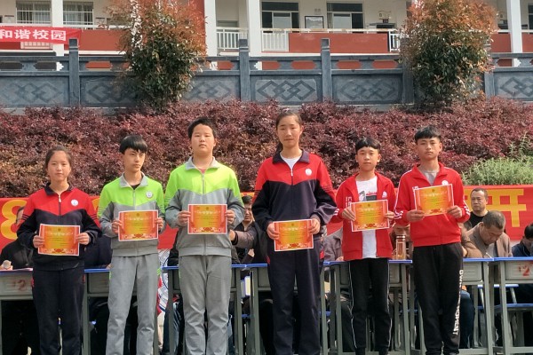 学校领导进行了热情洋溢的讲话,向辛勤耕耘、无私奉献的老师们和顽强拼搏、刻苦学习的同学们致以亲切的问候和美好的祝福!特别愿初三学子吹响心中前进的号角,为了自己的人生梦而砥砺前行。一年来,全校师生同舟共济,共同努力,各项工作取得了卓越的成绩。学校荣获“规范化党建示范学校”、“八优八化学校”、“禁毒示范学校”、“脱贫攻坚先进单位”、“防震减灾示范学校”、“平安校园”等称号。要求学生要拥有良好的行为习惯,做一个有责任感的人,勤奋好学、刻苦锻炼、遵守社会公德,力争做一个人格高尚的好学生。
