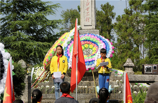 全校学生排成整齐的队伍,在老师的组织带领下有序地来到钟山乡烈士陵园进行清明祭奠活动,深切悼念革命烈士,缅怀革命先烈们的丰功伟绩,颂扬革命先烈的崇高精神。活动包括奏唱中华人民共和国国歌、少先队员敬队礼、为烈士真挚的敬献花圈、全体默哀以表达对英烈的追思、讲述感人肺腑的英雄故事、优秀少先队员代表发言、全体学生唱《中国少年先锋队队歌》、全体学生呼号及瞻仰纪念碑等一系列活动。