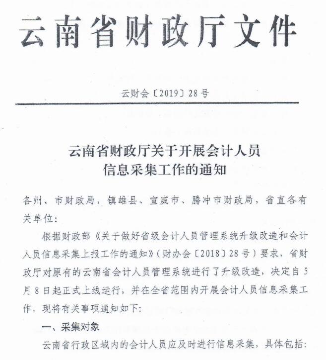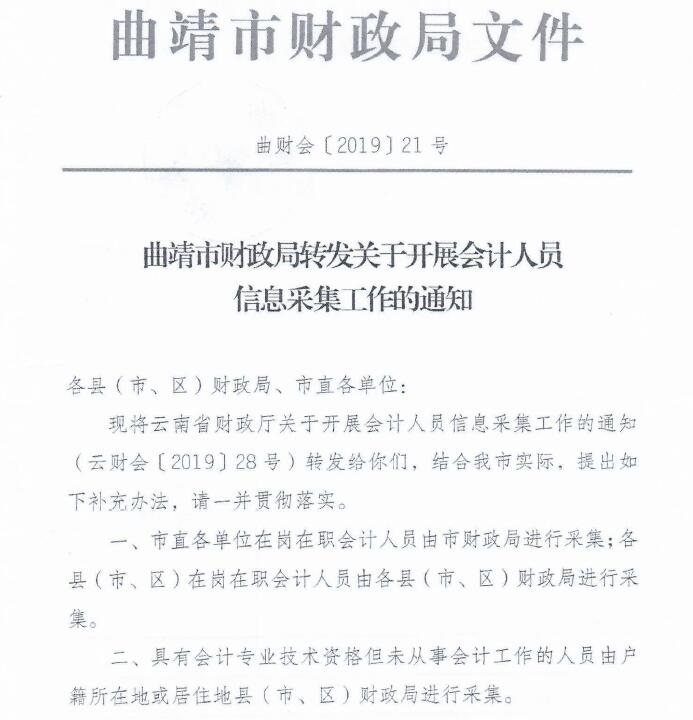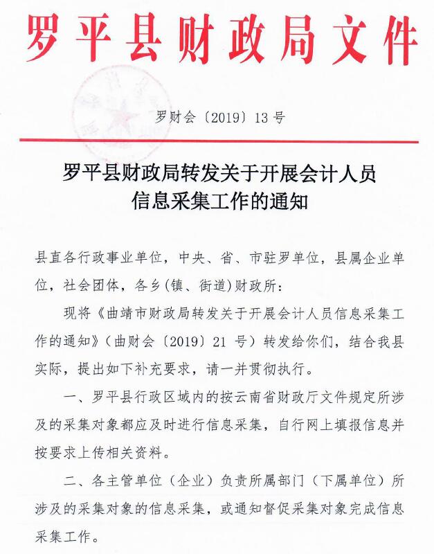 罗平县财政局转发关于开展会计人员信息采集工作的通知