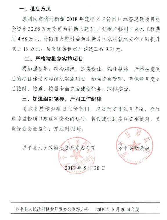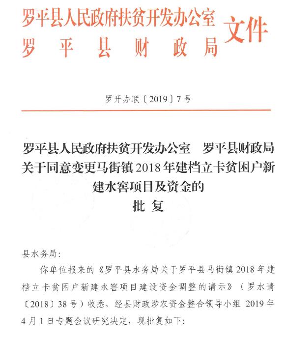 关于同意变更马街镇2018年建档立卡贫困户新建水窖项目及资金的批复