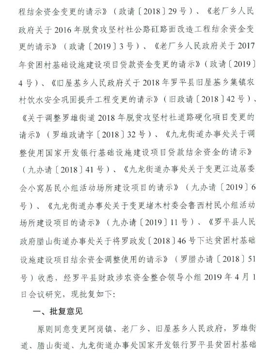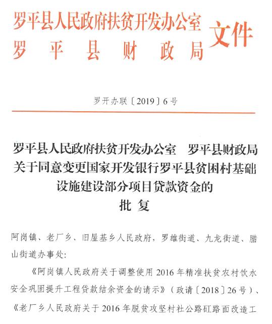 关于同意变更国家开发银行罗平县贫困村基础设施建设部分项目贷款资金的批复