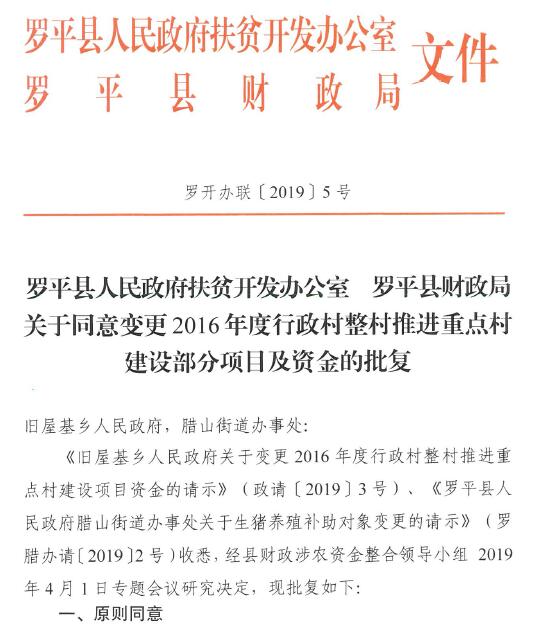 关于同意变更2016年度行政村整村推进重点村建设部分项目及资金的批复