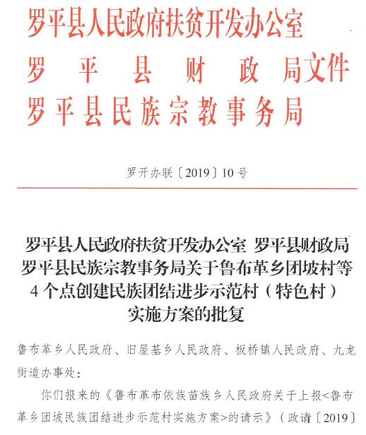 关于鲁布革乡团坡村等4个点创建民族团结进步示范村(特色村)实施方案的通知